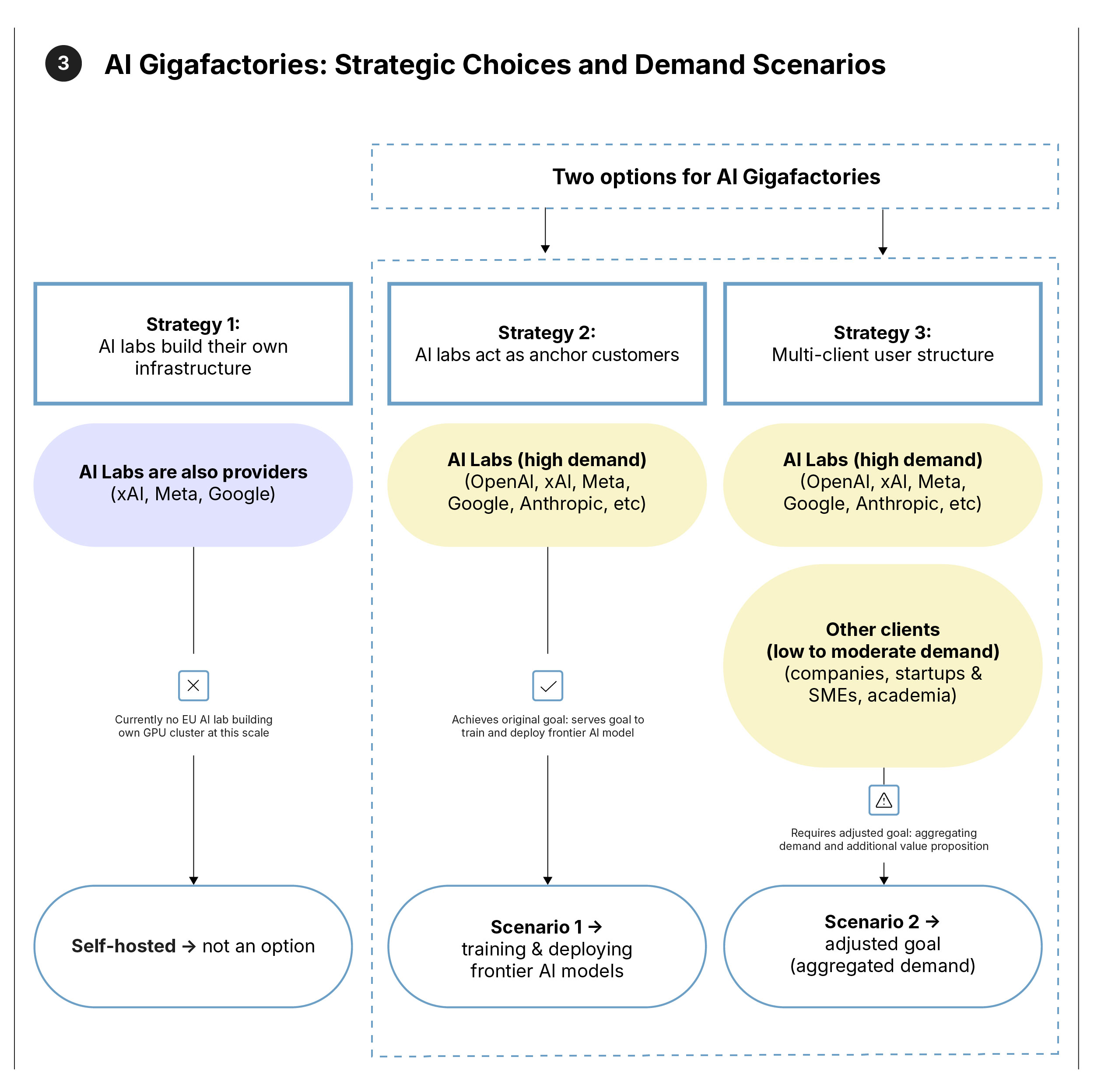 (2) A realistic goal: Strengthening the European AI ecosystem effectively requires a clear strategy and feasible objective behind the buildout of AI compute, one that is connected to industry dynamics in play.