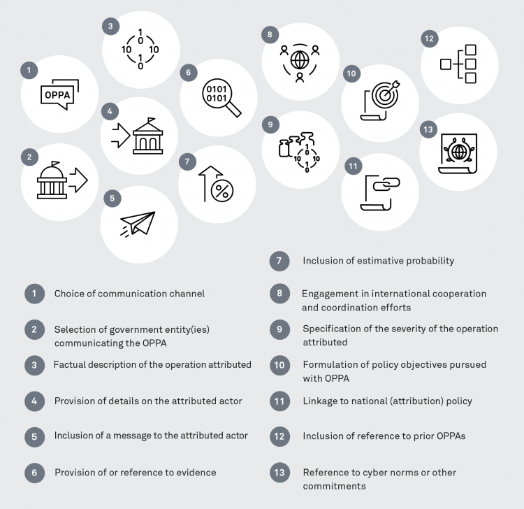 To stimulate an international strategic debate on this policy instrument that may eventually lead to a shared understanding, this analysis provides an overview of the current state of play and the policy options at a state’s disposal when engaging in official public political attributions of cyber operations. To do so, it focuses on the practices of four countries—Australia, Germany, Japan, and the U.S. Based on a comparison of 164 official public political attributions by the four selected states—109 by the U.S., 32 by Germany, 17 by Australia, and 6 by Japan—this paper proposes and applies an analytical framework of 13 parameters with corresponding options that serves to identify similarities and differences—areas of convergence and divergence—across countries.