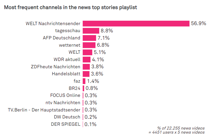 6 Johannes Filter, ‘DIE WELT newspaper dominates YouTube’s featured news playlist’, DataSkop, 14 April 2022.