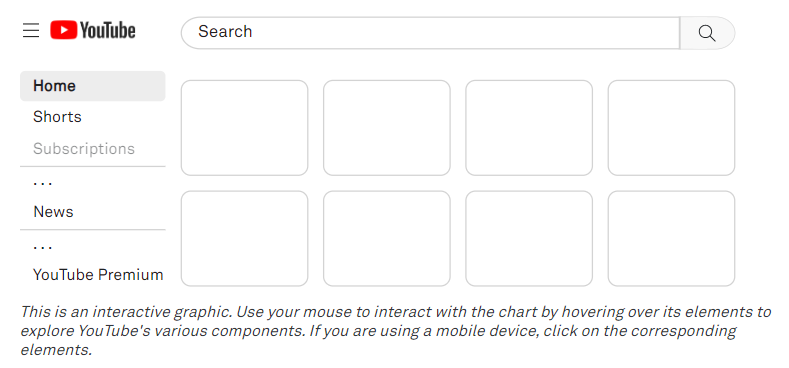 Very large online platforms are complex entities that consist of several technical products, each with their own teams, objectives, and sets of algorithms. We will illustrate this by using YouTube as an example. Oftentimes, even a single webpage holds multiple platform features. For example, from YouTube homepage users can access several YouTube components, or product features, as defined by the company itself. 3